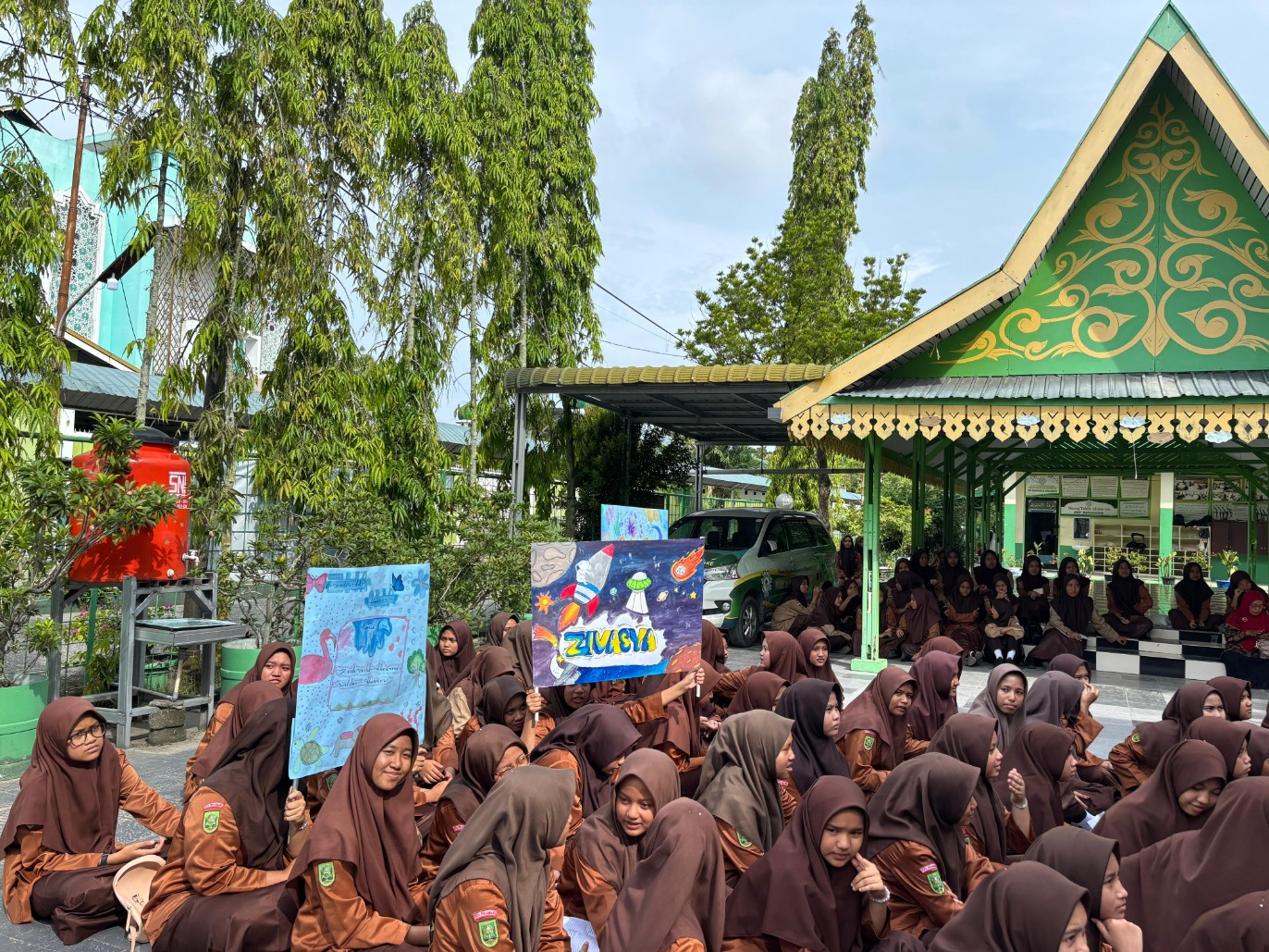 Sorak sorai para pendukung semakin menambah kemeriahan suasana kampanye. Para siswa membawa spanduk, poster, serta meneriakkan yel-yel kebanggaan untuk mendukung jagoan masing-masing. Meski berlangsung meriah, kegiatan tetap berjalan dengan tertib dan kondusif berkat pengawasan panitia dan para guru.