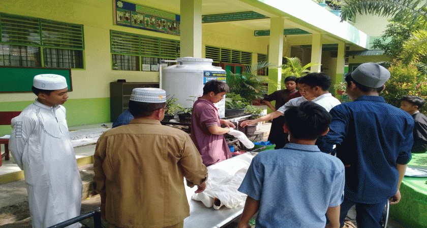 Santri SMP babussalam melaksanakan Praktik penyelenggaraan Jenazah.