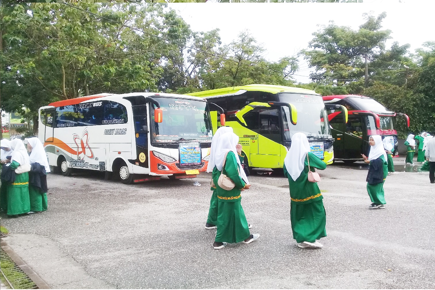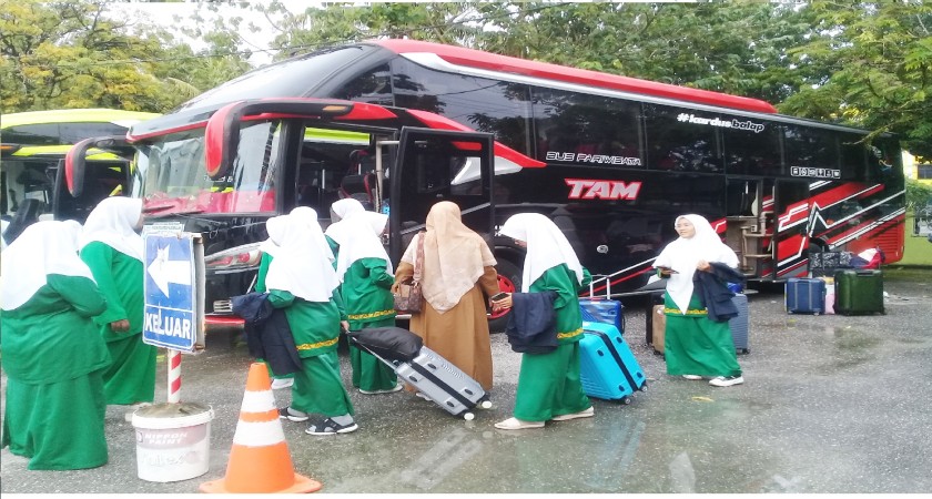 Pekanbaru, 27 November 2023 - Pagi ini, Santri kelas 9 SMP Babussalam Pekanbaru dipenuhi semangat dan kegembiraan saat mereka bersiap-siap untuk memulai perjalanan ziarah dan studi wisata ke Medan - Aceh. Rombongan yang terdiri dari 4 bus besar sudah siap berangkat pukul 8 pagi menuju destinasi pertama mereka, Medan.
