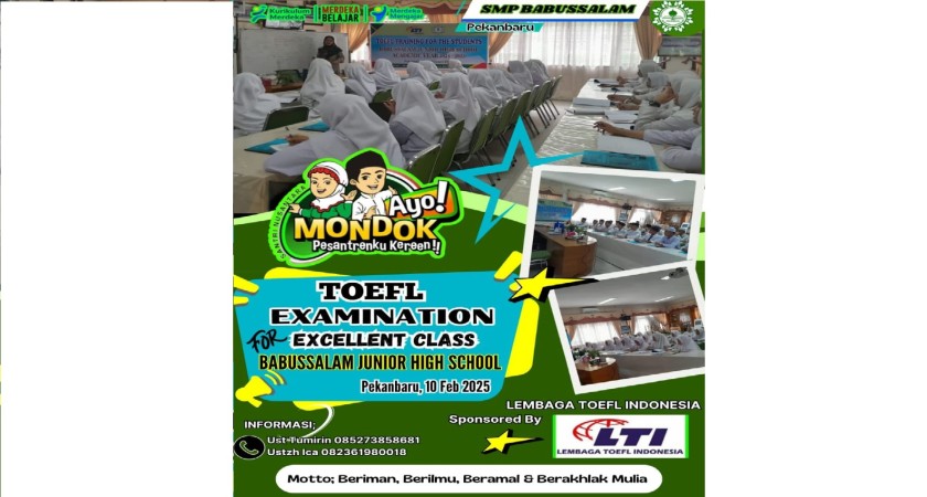 Ujian TOEFL ini menjadi langkah awal bagi SMP Babussalam Pekanbaru dalam mencetak generasi unggul yang siap bersaing di tingkat nasional maupun internasional. Hasil tes akan diumumkan dalam beberapa minggu ke depan. Semoga hasil yang diperoleh dapat menjadi motivasi untuk terus belajar dan meningkatkan kemampuan bahasa Inggris mereka.