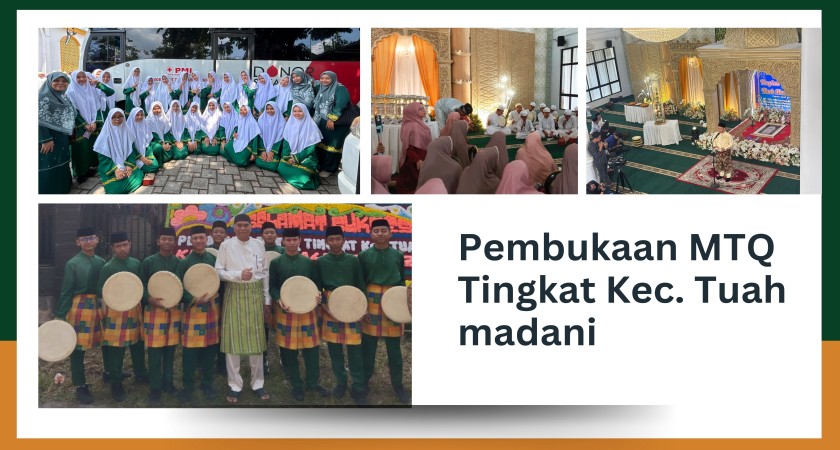 Pagi ini, suasana Masjid Darul Aman dipenuhi keceriaan dalam rangka pembukaan Musabaqah Tilawatil Qur’an (MTQ) Tingkat Kecamatan Tuah Madani. Acara pembukaan tersebut menjadi lebih meriah berkat partisipasi aktif santri SMP Babussalam yang mendapat kehormatan untuk turut serta mengisi rangkaian kegiatan.