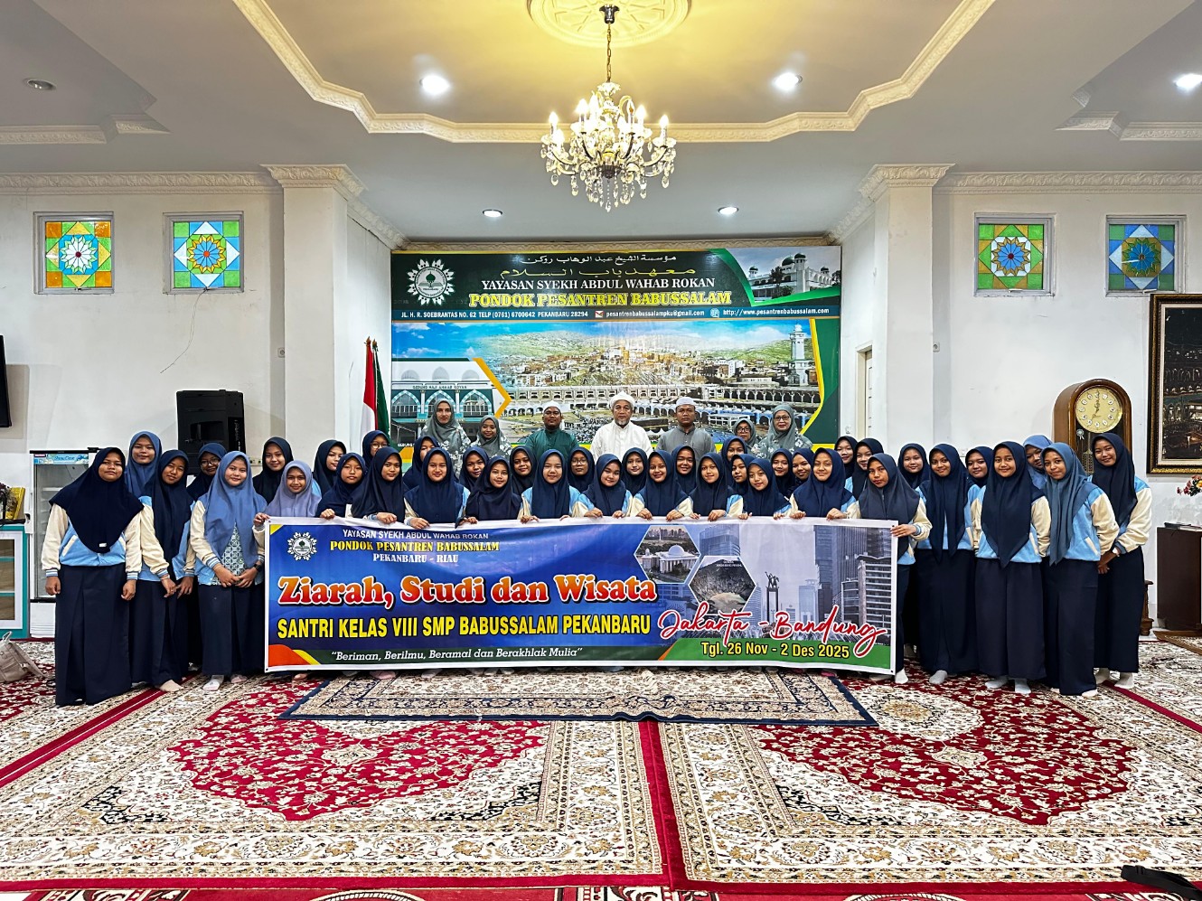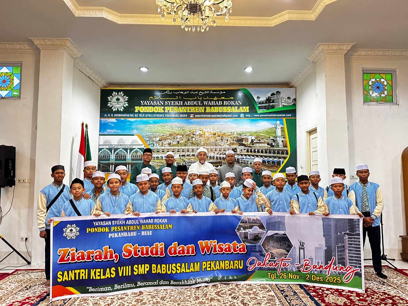Hari ini, santri kelas 8 resmi diberangkatkan untuk mengikuti kegiatan ziarah dan studi wisata ke Jakarta–Bandung. Program ini berlangsung selama satu minggu penuh dengan berbagai agenda edukatif dan religius yang telah disusun oleh sekolah.