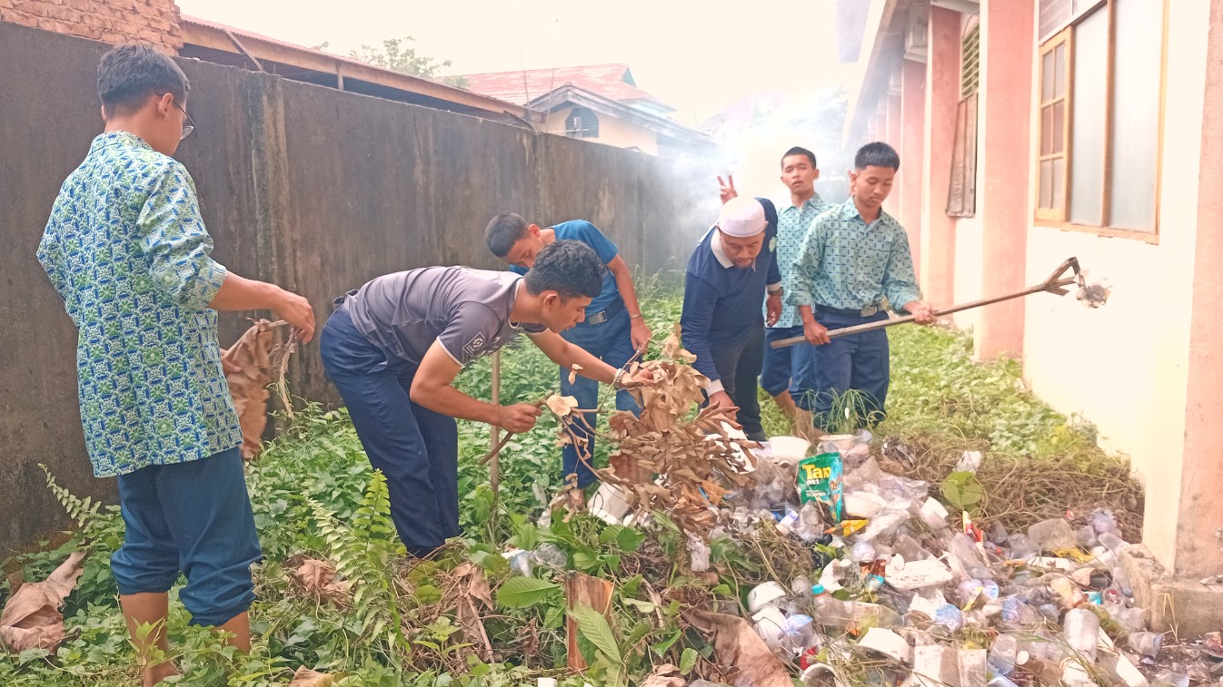 Suasana kebersamaan dan semangat tampak jelas sepanjang kegiatan berlangsung. Para santri bekerja dengan penuh tanggung jawab dan saling membantu satu sama lain. Kegiatan ini tidak hanya membersihkan lingkungan, tetapi juga mempererat ukhuwah dan menumbuhkan rasa kepedulian sosial.