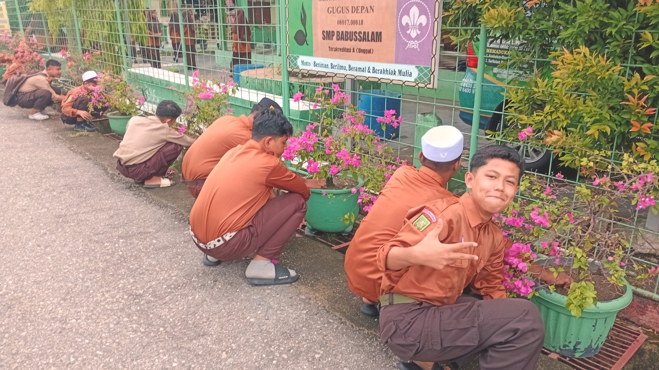 Sabtu, 11 April 2026 — SMP Babussalam menggelar kegiatan gotong royong (goro) massal di lingkungan sekolah dengan tema “Menyambut Suasana Belajar Bersih dan Nyaman.” Kegiatan ini diikuti oleh seluruh siswa serta guru sebagai bentuk kepedulian terhadap kebersihan dan kenyamanan lingkungan sekolah.
